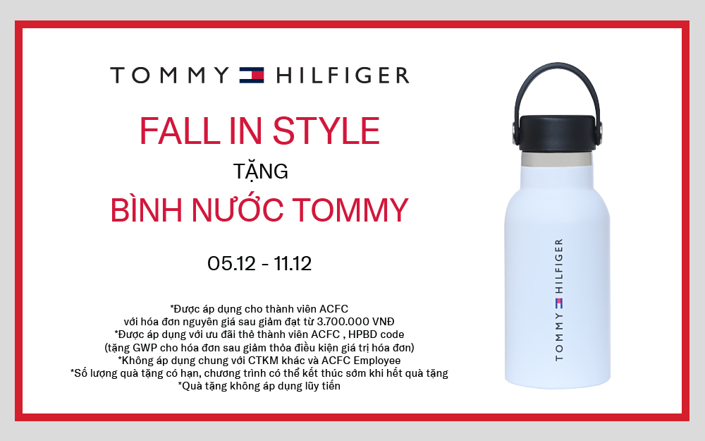 From 05/12 – 11/12/2025, Tommy Hilfiger offers a Tumbler for a full-priced bill from 3.700.000 VND at Tommy Hilfiger store (except Tommy Hilfiger Noi Bai store and Tommy Hilfiger Cam Ranh store).
